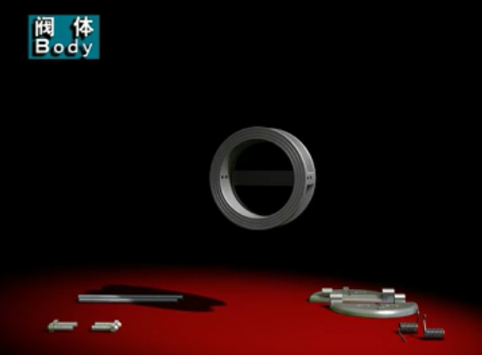 两个阀瓣绕中间阀轴旋转,如同两扇推拉门,同时装有弹簧,助推两个阀瓣向阀门关闭的方向运动;