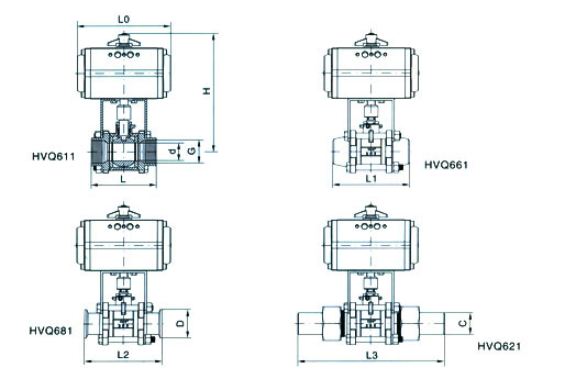主要外形及连接尺寸 Q6(11、61、81、21)(F、N、P)-16-64