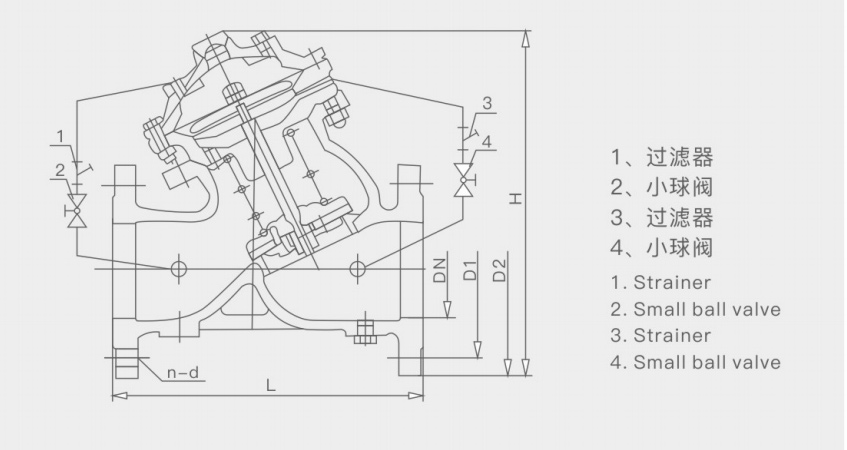 JD745X多功能泵控制阀由主阀和控制阀及接管系统组成,主阀控制室是直流阀,主阀控制室是隔膜或活塞的双控制室结构,控制室比普通液压控制阀增加了1个,增加了主阀的控制功能,实现了对泵出口的缓慢打开、完全打开、关闭、关闭等多功能控制。阀门,实现一次调节对。